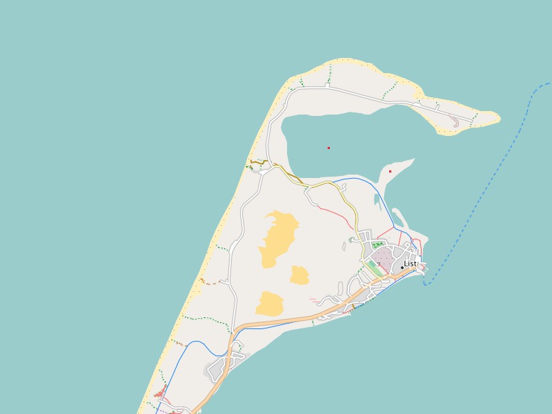 Kartendarstellung in BaseCamp: Der nördlichste Landpunkt Deutschlands - das Nordende (Ellenbogen genannt) der Insel Sylt auf 0m Höhe. Gut zu erkennen auch die letzten Wanderdünen